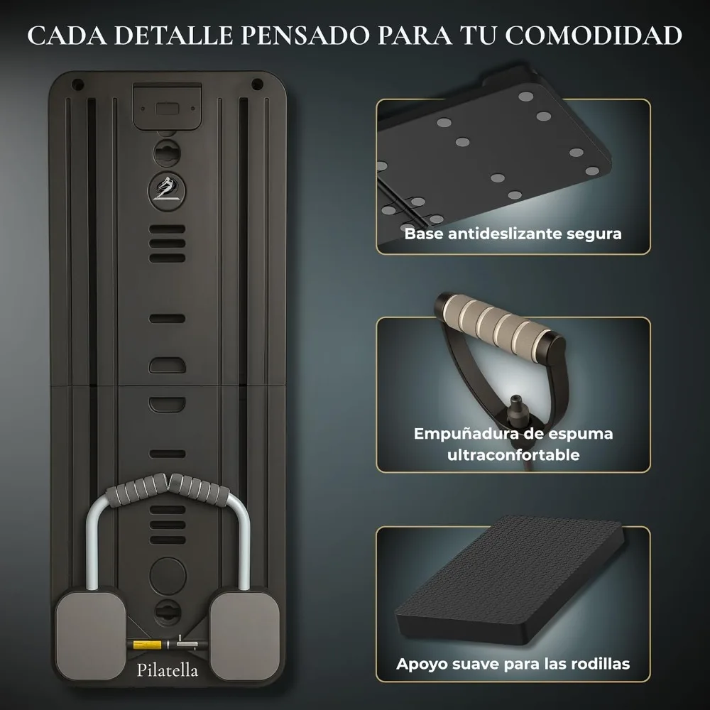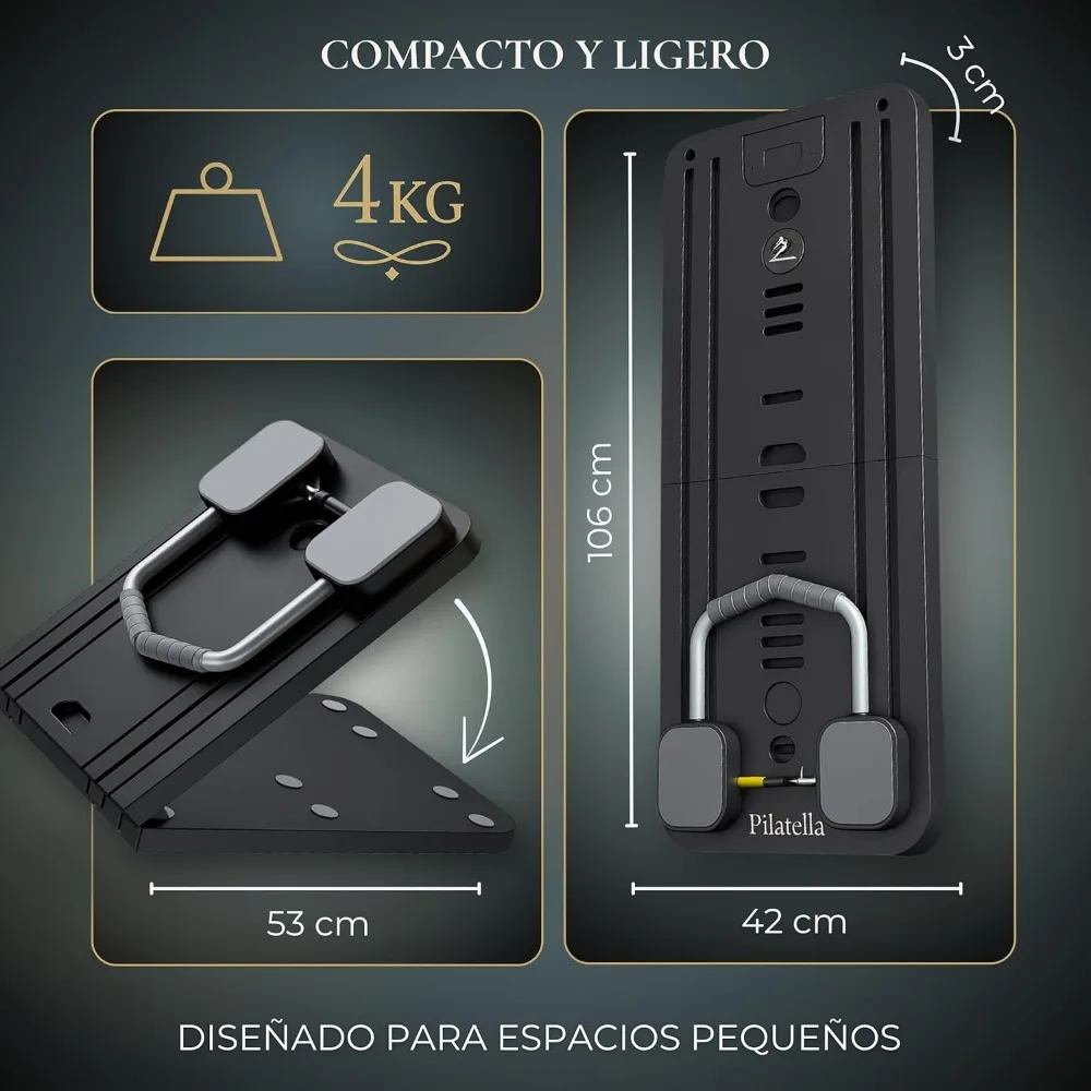 • 🧘 TU ESTUDIO DE PILATES TE SIGUE A TODAS PARTES – Tabla pilates plegable en segundos, ligera (solo 3 kg) y con bolsa de transporte premium. Entrena en el salón, en el jardín, en la terraza o incluso de vacaciones. Guía digital incluida con ejercicios para suelo, pared o mesa. Flexibilidad total para mujeres dinámicas que no quieren depender de horarios ni gimnasios.